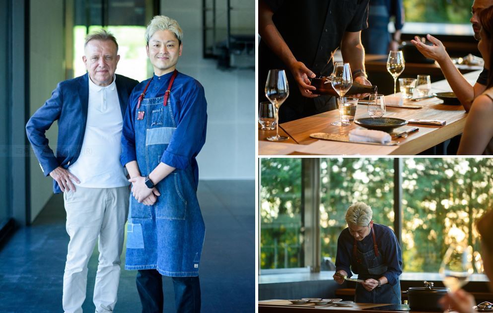 ドン ペリニヨンの元醸造最高責任者リシャール・ジョフロワが率いる酒蔵「日本酒 IWA」。レセプションでは、能登牛料理人・登るやオーナー道淵シェフの能登牛料理を提供されています。