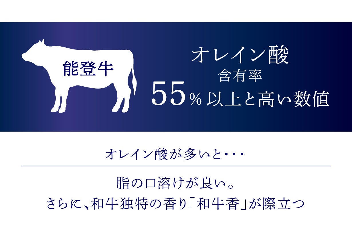 「能登牛」は、オレイン酸の含有率が高いとされ、「全国和牛能力共進会」 で脂肪の質が優れていると評され、特別賞を受賞しています。