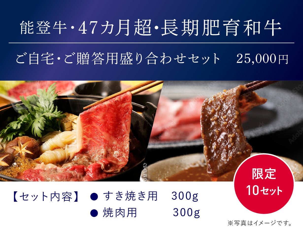 能登牛・47ヵ月超・長期肥育和牛 すき焼き用・焼肉用 各300g