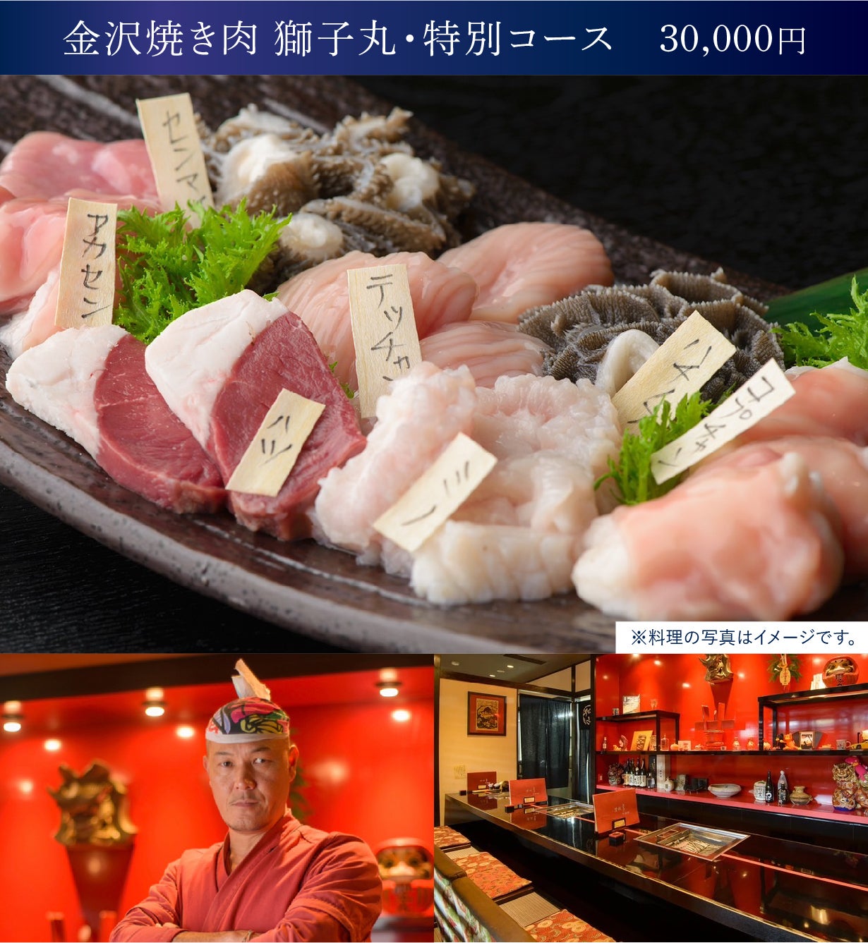 今プロジェクトのために育てられた能登牛のお肉のみで構成されたフルコースです。能登杜氏発祥の地と言われる能登半島で150年以上続く松波酒造様の日本酒を来店時にウェルカムドリンクとしてご提供いたします。