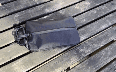 A: 生地は防水素材のX-PAC、チャックもYKK止水チャックですので、ある程度の雨であれば大丈夫です。長時間のご使用は隙間より浸透する場合もございますので、水に濡れた場合はお早めに拭き取りをお願いします。