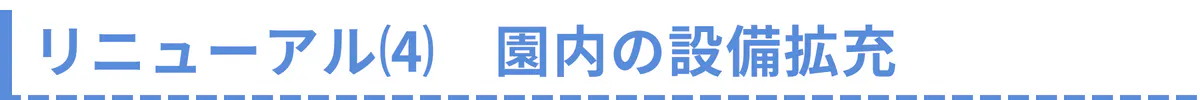 さらに、老朽化や時代の変化によって使いにくくなっていた大型遊具の入れ替えや、新基準に合致した消防設備の導入など、園内の設備の拡充も行います。