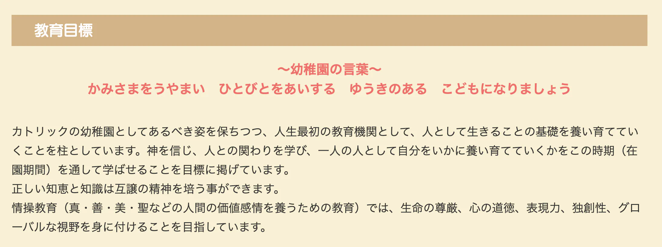 キリスト教精神に基づいたカトリック系の幼児教育機関の運営に責任を持って取り組んでいます。
