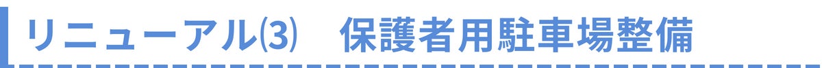 そこで、今年度のリニューアルに合わせて駐車場を新設。安全に送り迎えができるように、一方通行で死角の少ない開かれた駐車場になる予定です。