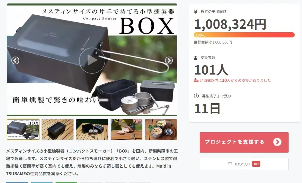 100人を超える方々のご支援のおかげで本日目標の100万円を達成することができました。