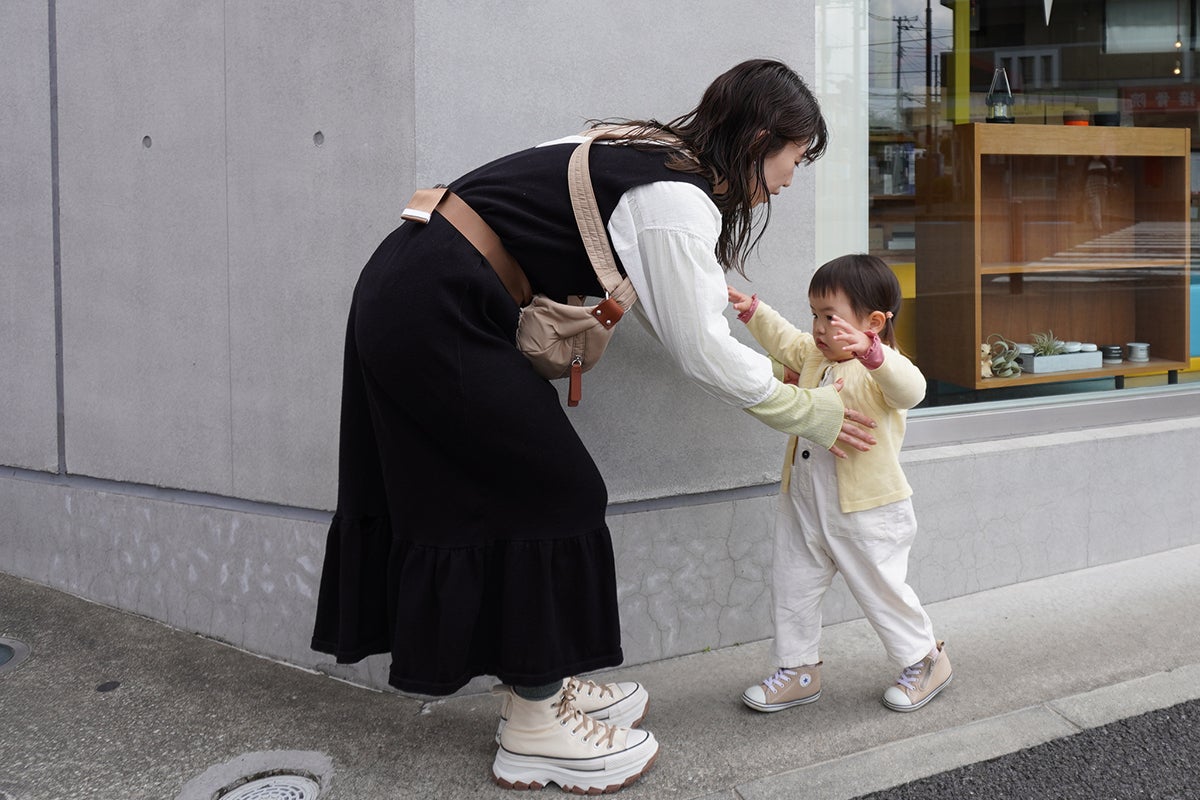 ミニマルでジェンダーレスなデザインは、パパもママも誰でも、どこへでも毎日使えるバッグです。