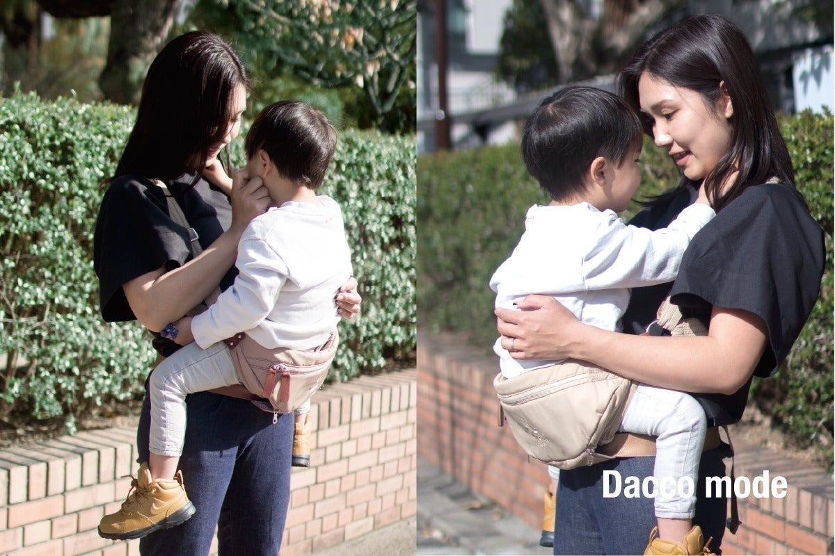 歩き始めた子供を少しでも楽に快適に抱っこできるよう普段使いのバッグにお子さま を乗せるという発想です。