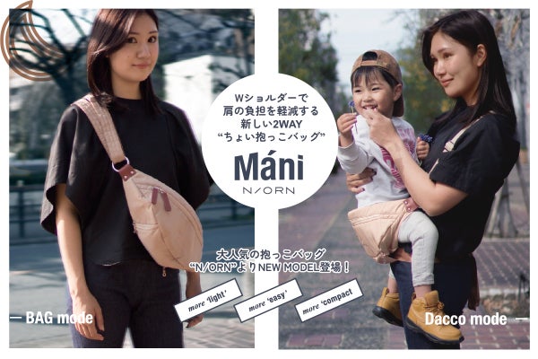 「ちょい抱っこ」抱っこ紐は、新生児から使用できるものも多く、比較的長時間抱っこすることを目的として作られているのに対して、N/ORN Mániは歩き始めたお子さまの特性に合わせて、短時間での抱っこをすることを目的としています。