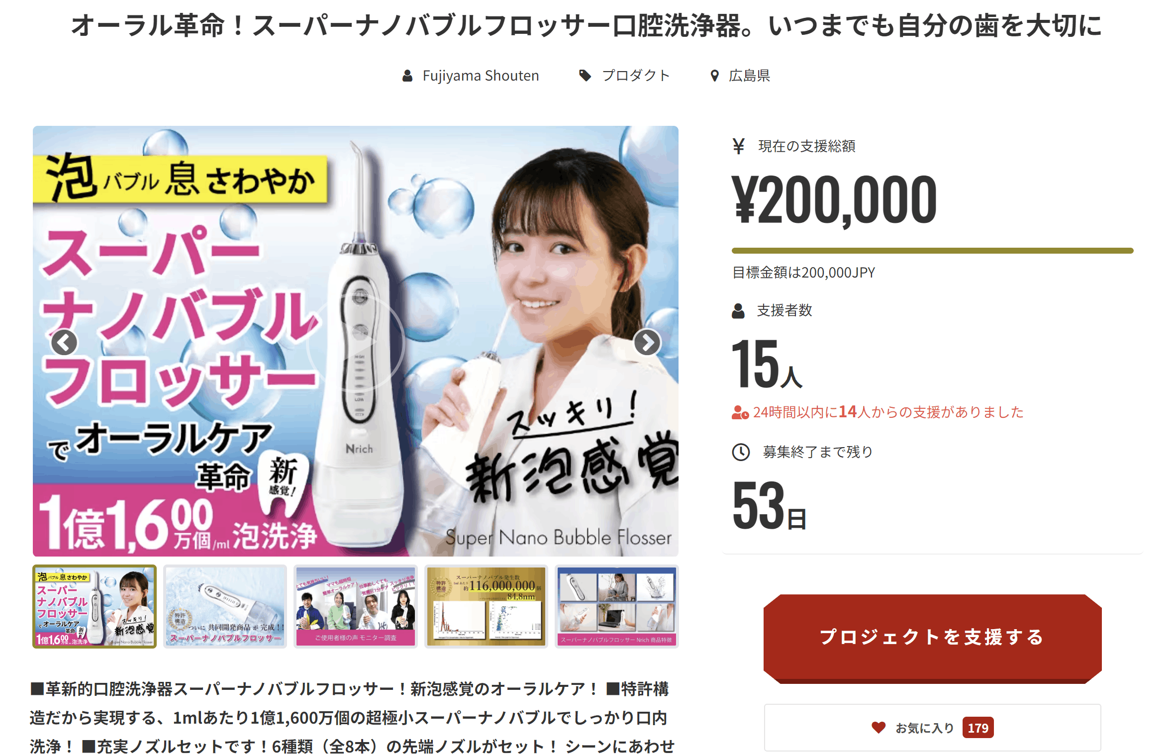 この度、「スーパーナノバブルフロッサー Nrich」を応援ご購入いただきまして、誠にありがとうございます。