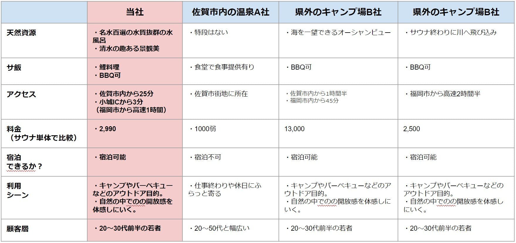 近隣のサウナ施設と当社の違いを表にまとめてみました!