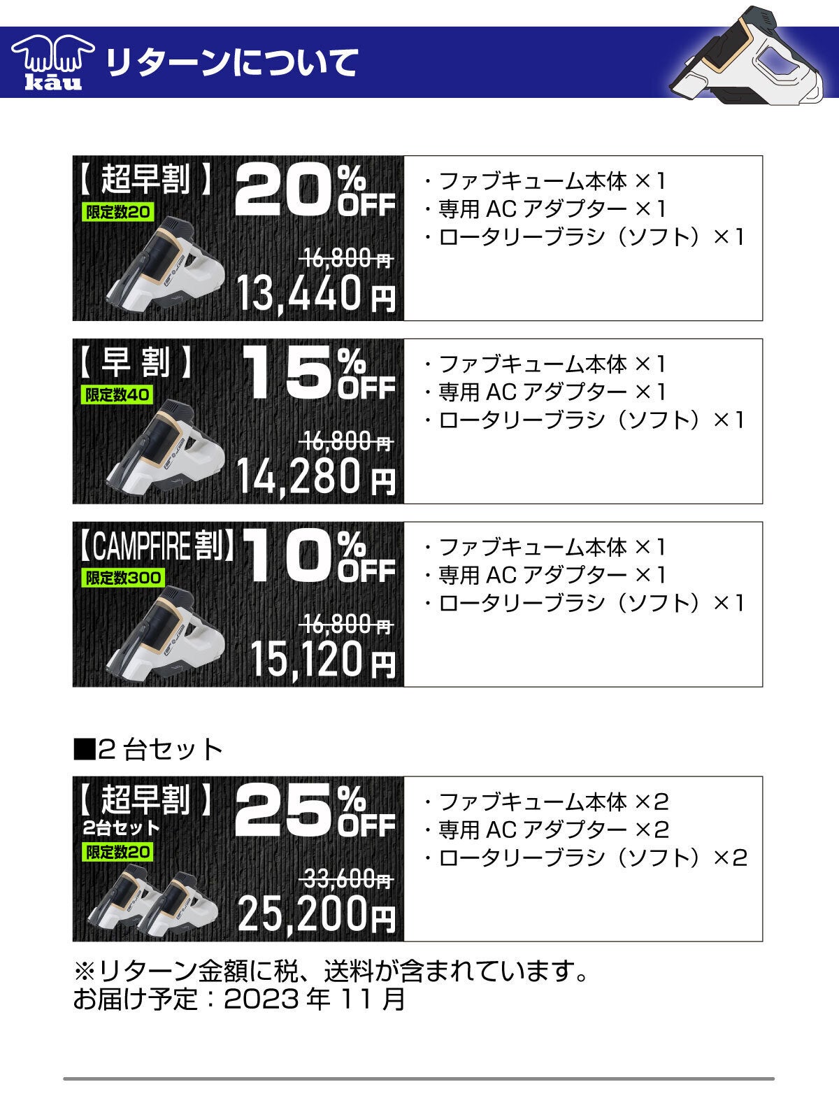 【価格について】ご支援人数が予測を上回ったり、為替レートが大きく変動した場合、正規販売価格が予定販売価格を下回る可能性がございます。