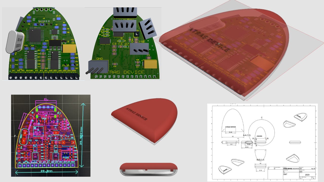 製品完成までのプロセスを4つの段階に分け、それぞれの段階で必要な試作を行ってきました。Ver.1では、実現可能性を確認するための試作を行い、Ver.2では必要な機能を全て盛り込んだ開発、Ver.3では課題の改善を行い、Ver.4ではコスト削減と品質・技術の最適化を行います。現在、我々はVer.1の試作を終了し、ハードウェアとソフトウェアの両方で検証を行いました。素子を搭載したマウスピースの自作作成や回路基板の作成、アプリケーションの作成や動作確認などを行い、国内向けで特許出願を完了しました(【出願番号】特願2023-54871)。Ver.1の試作は、当初予定の5カ月の期間を縮め、わずか2カ月で完成しました。これは、メンバーが一丸となってこの製品の完成を実現したいという強い意志と情熱があったからだと思います。過程で多くの困難に直面し、何度も挫折を経験しましたが、メンバーはめげずに取り組み、乗り越えることができました。以下には、我々が試作した部品の写真を紹介します。