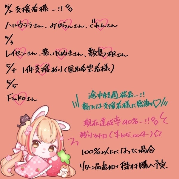 たくさん頂いたので早めの報告になりましたーー⊂( ・ω・ )⊃ほんとにありがとうございますぅぅぅ!!あと少し…。がんばるっ⸜( * ॑꒳ ॑*)⸝シュタッ!