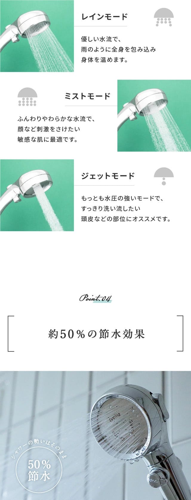 『ジームスウルトラファインバブルシャワー』はワンタッチで3段階の水流モードに切り替わります。