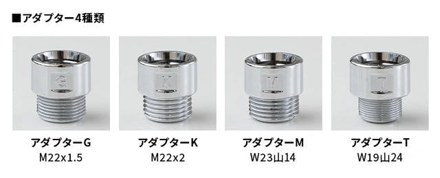 シャワーホースにそのまま接続ができない場合は、付属のアダプター4種から適切なタイプを選び、シャワーヘッドに取り付けてください。