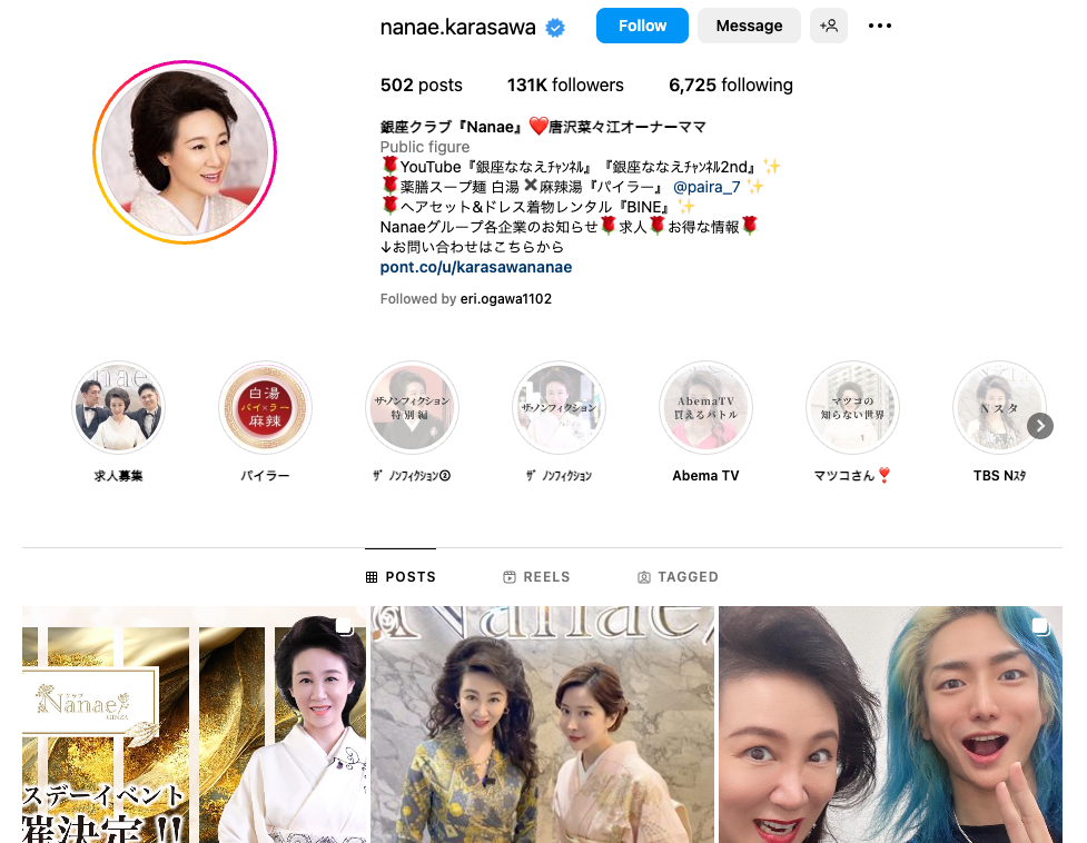 2018年にオーナーママとして銀座クラブ「Nanae」をオープン。