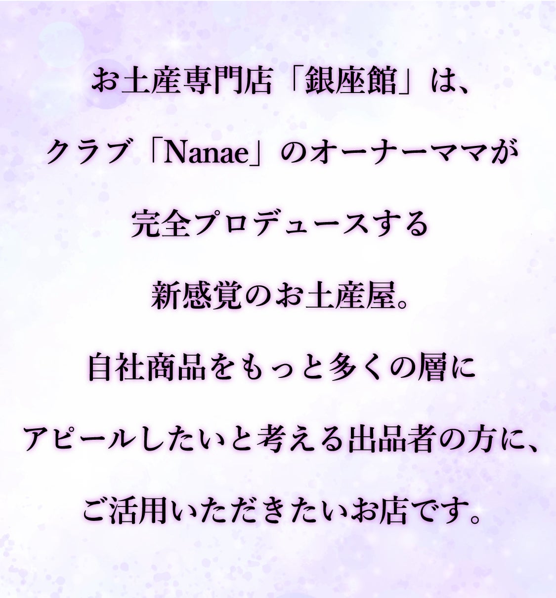 ななえママを筆頭とする銀座館の運営チームがあなたの商品の「銀座デビュー」を手厚くサポートします。