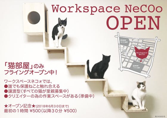 私たちはこの度、ネコの癒しとものづくりスペースが1つになった新しい施設「Workspace NeCOo」をオープンするチャレンジをはじめました。