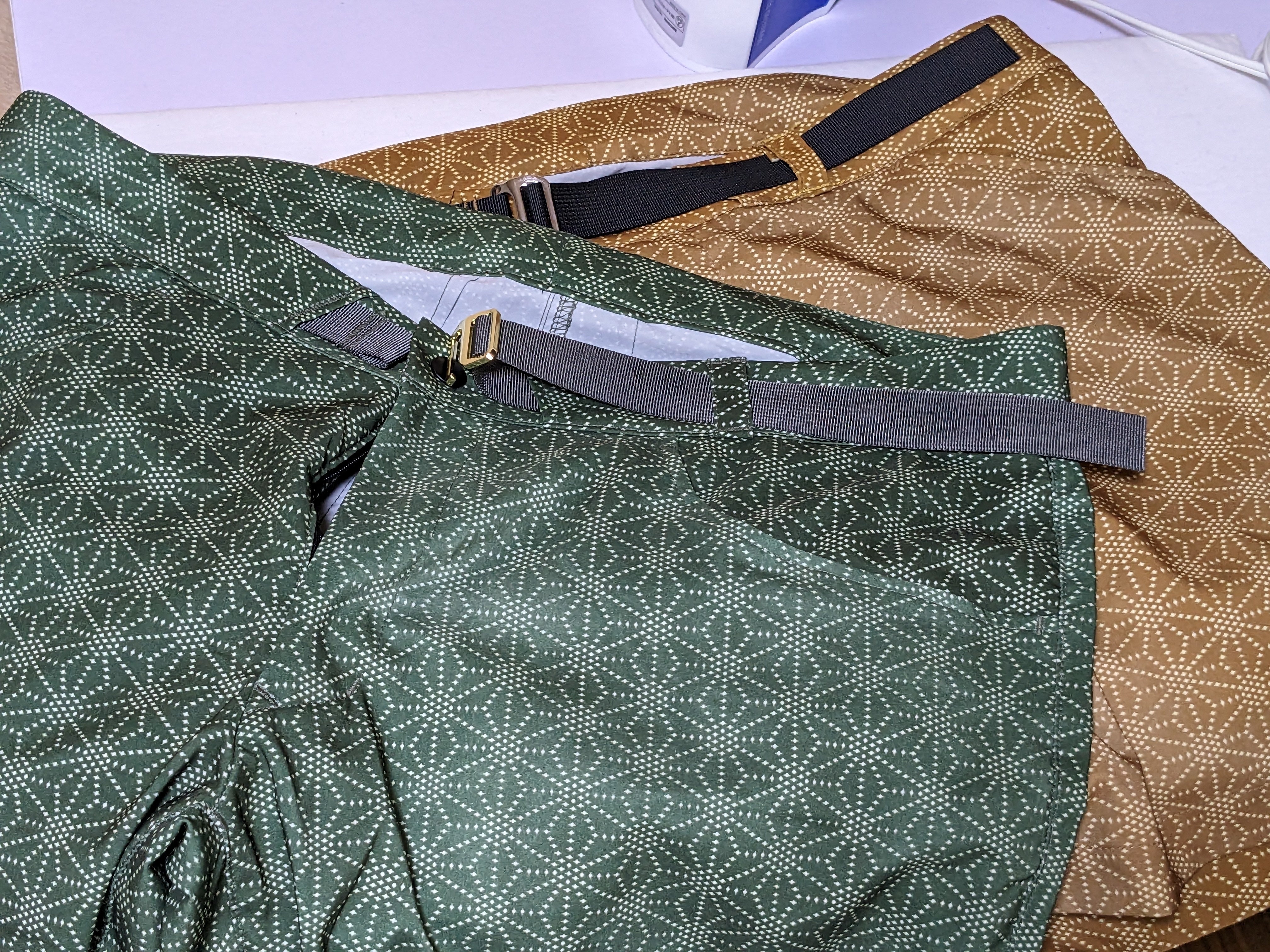 Monpe Climberの残反が発見されたので少しですがショートパンツ作ろうと思います とりあえず先立ってサンプル作りましたXLで股下7インチ164g生地はmonpe climberと同じ速乾にステガン振り+抗菌のポリエステル100%ストレッチ(120g/㎡)です 涼しいし足上げすごく良いシルエットもスッキリ気味でけっこう綺麗です販売方法は未定ですが来月から販売できるようにしたいと思っていますとりあえず販売予定の4柄分サンプル作ってアップしますので少々お待ちください