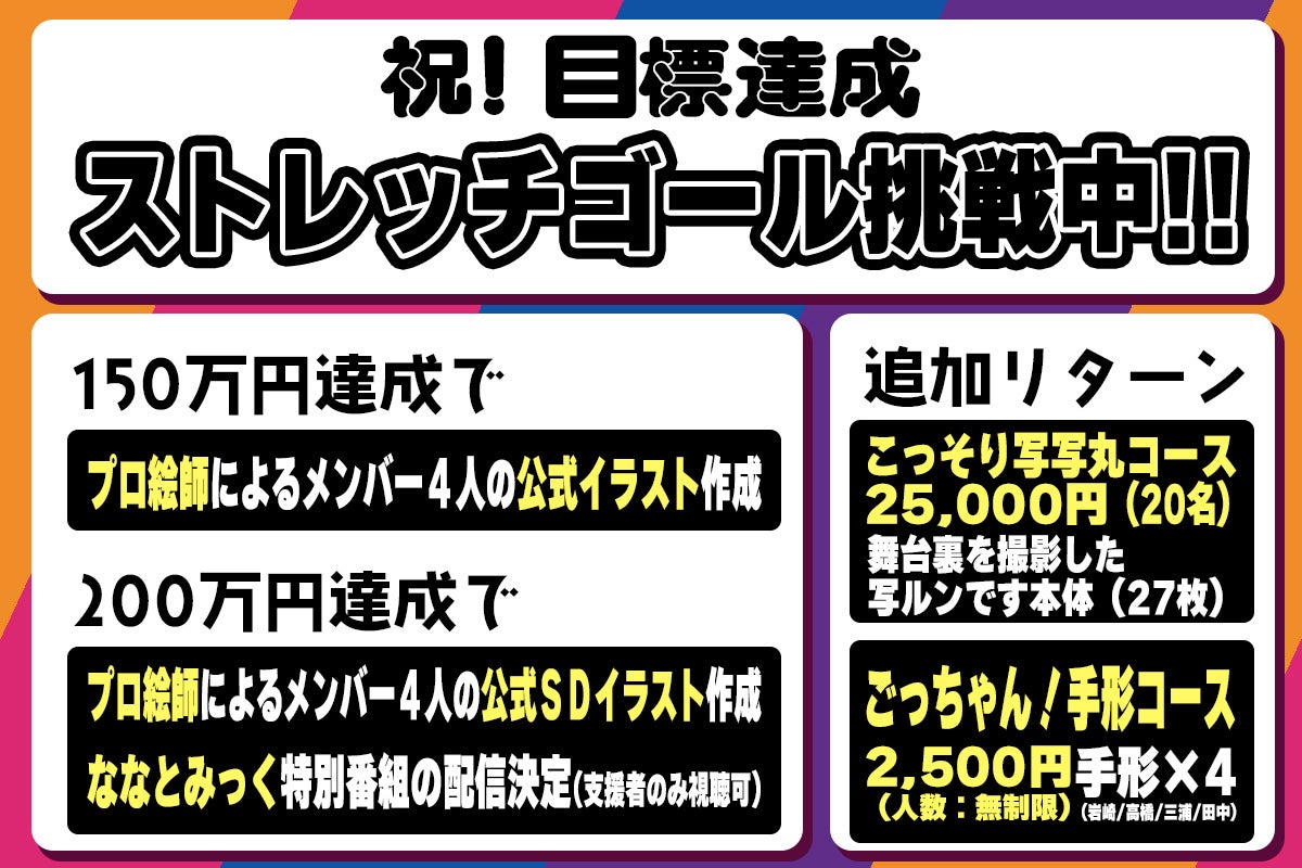 この企画の支援金は、4人揃いの新衣装の準備、
