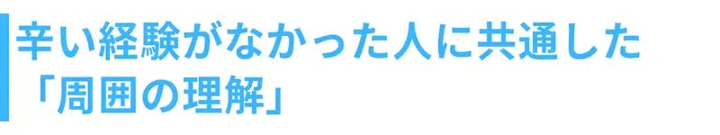 多くの人々が身近なコミュニティーでの無理解によって辛い経験をしているなかで、ごく少数の方は辛い経験がまったくなかったと回答しました。