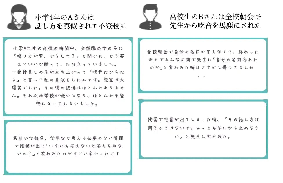 吃音に対する無理解や認知の低さから、学校や家庭で辛い経験をした子供が大勢います。