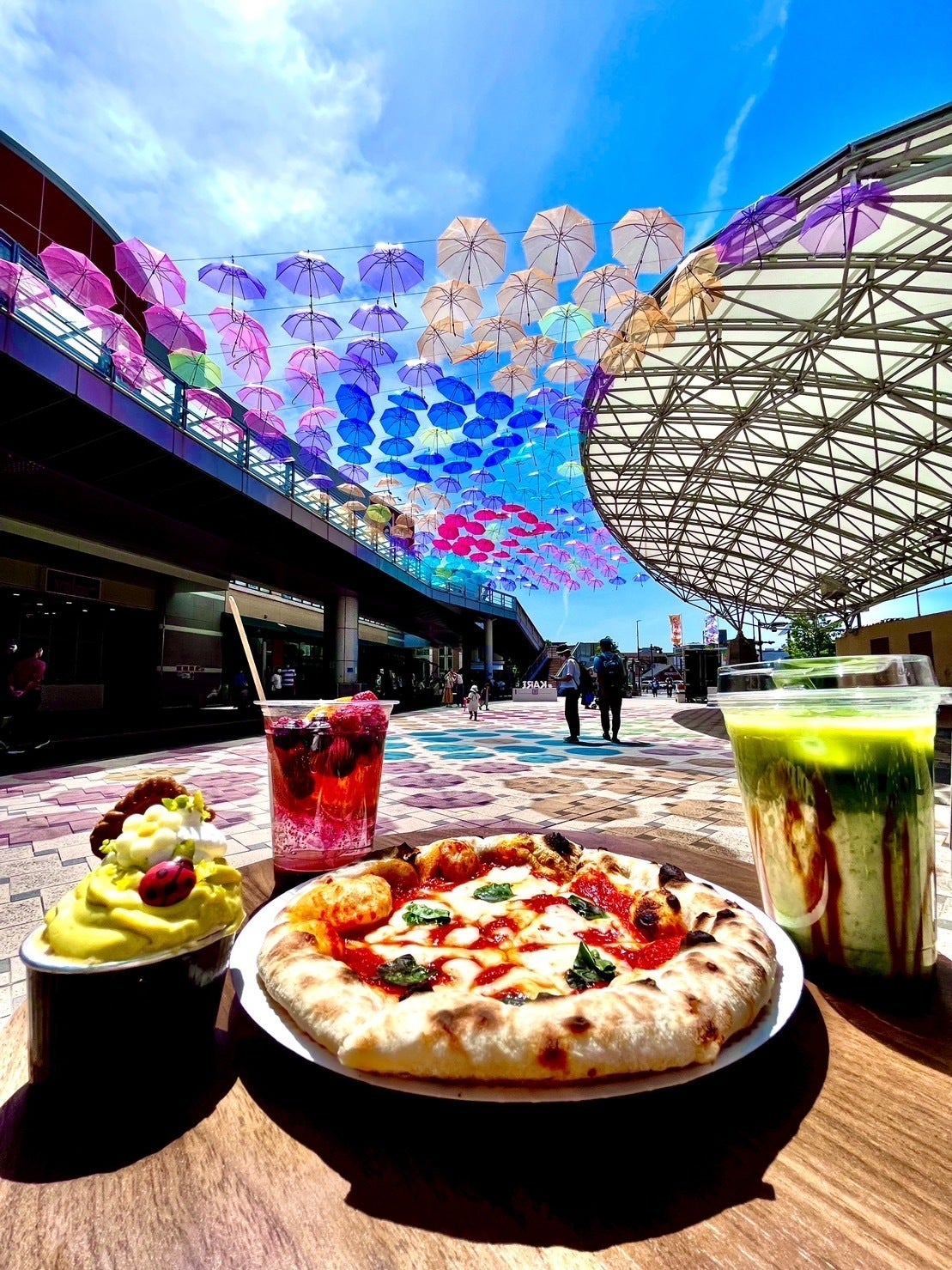 期間中は毎日、キッチンカーや地元人気店を呼び、傘を見ながら食事を楽しむスペースを用意します。