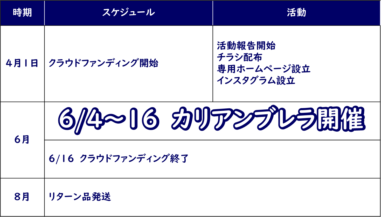 どうか、皆様の想いをこのカリアンブレラの開催の支援として乗せていただけると幸いです。