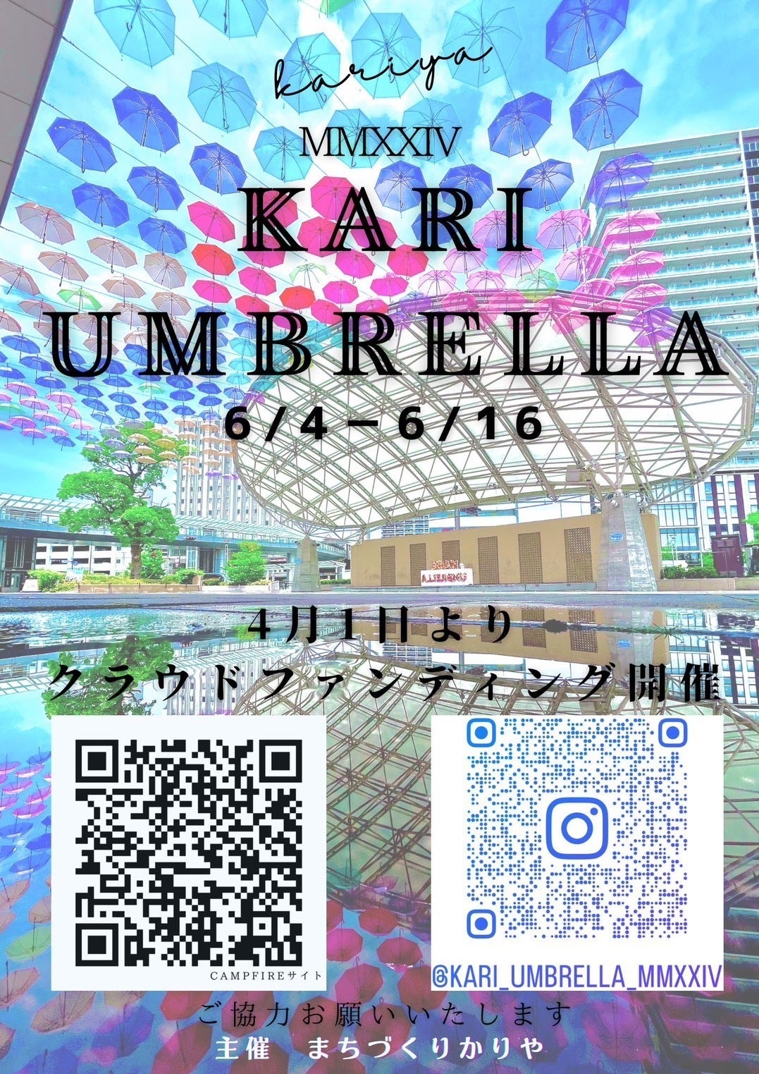 新年度を迎え、いよいよカリアンブレラのクラウドファンディングが始まりました!ようやく、スタートラインに立てました。ここに至るまで、長く、遠い道のりでしたが、クラウドファンディング実現に向けて諦めずにご協力下さった方々にまずは御礼申し上げたいと思います。ありがとうございました。クラウドファンディングは、みなさんの声の代わりと認識しています。一方通行のイベントでは無く、皆さんで協力し、成し遂げたいです。何卒、ご支援・拡散をよろしくお願いします!ちなみに、カリアンブレラ特設HPも運用していますので、こちらからご覧ください。https://kari-umbrella.studio.site/こちらに、ご支援いただいた方のインスタアカウントを掲載するリターンもご用意していますので、是非ご支援をお願いします。引き続き、よろしくお願いします!