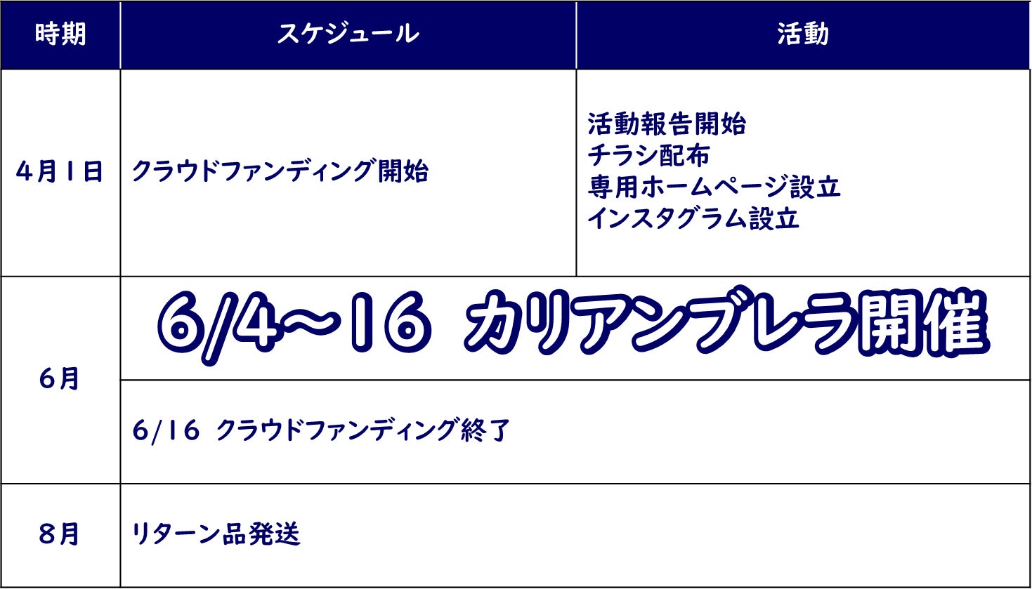 どうか、皆様の想いをこのカリアンブレラの開催の支援として乗せていただけると幸いです。
