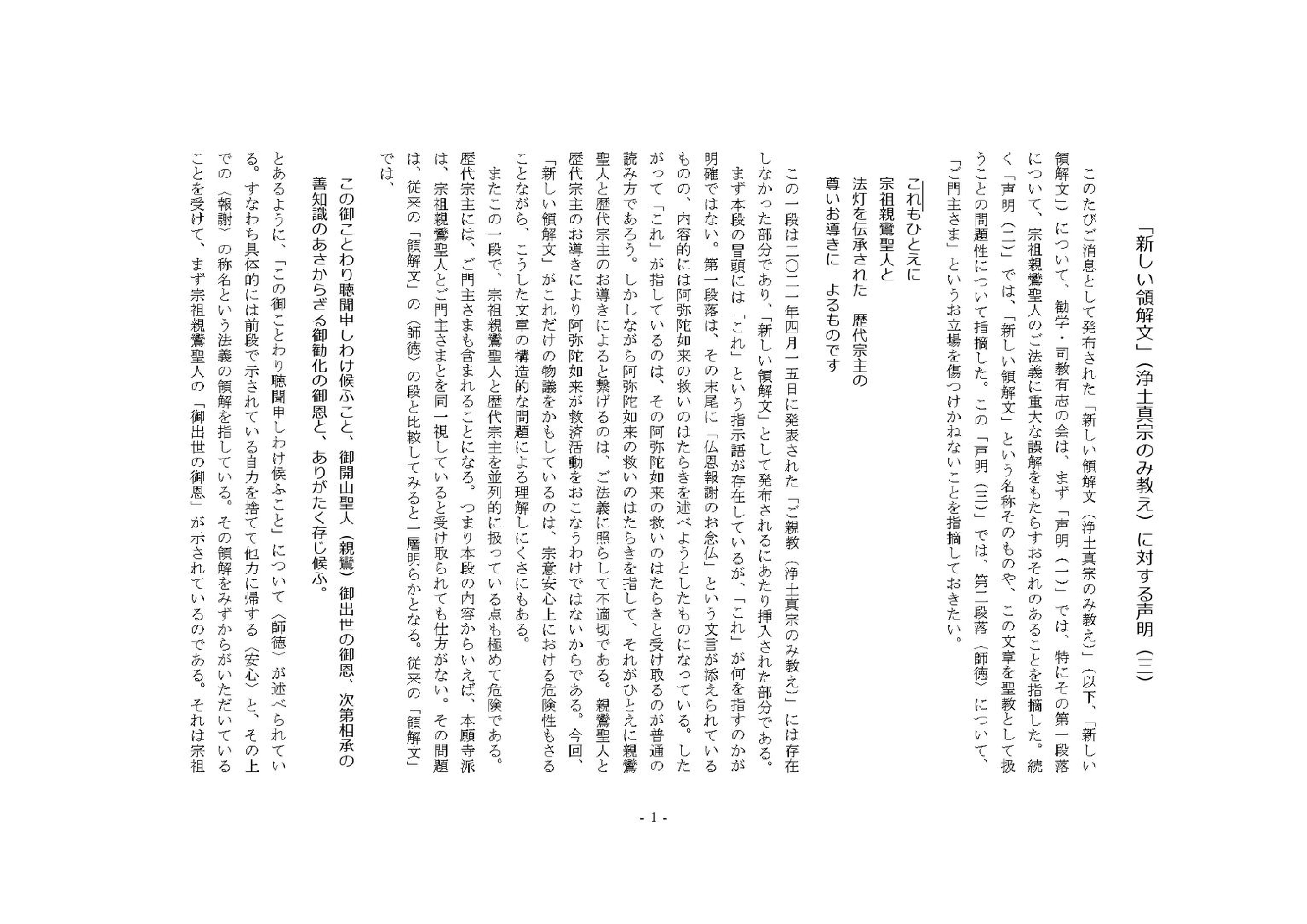 2023年4月22日、浄土真宗本願寺派勧学・司教有志の会から「新しい領解文(浄土真宗のみ教え)」に対する声明の第3弾が発表されました。