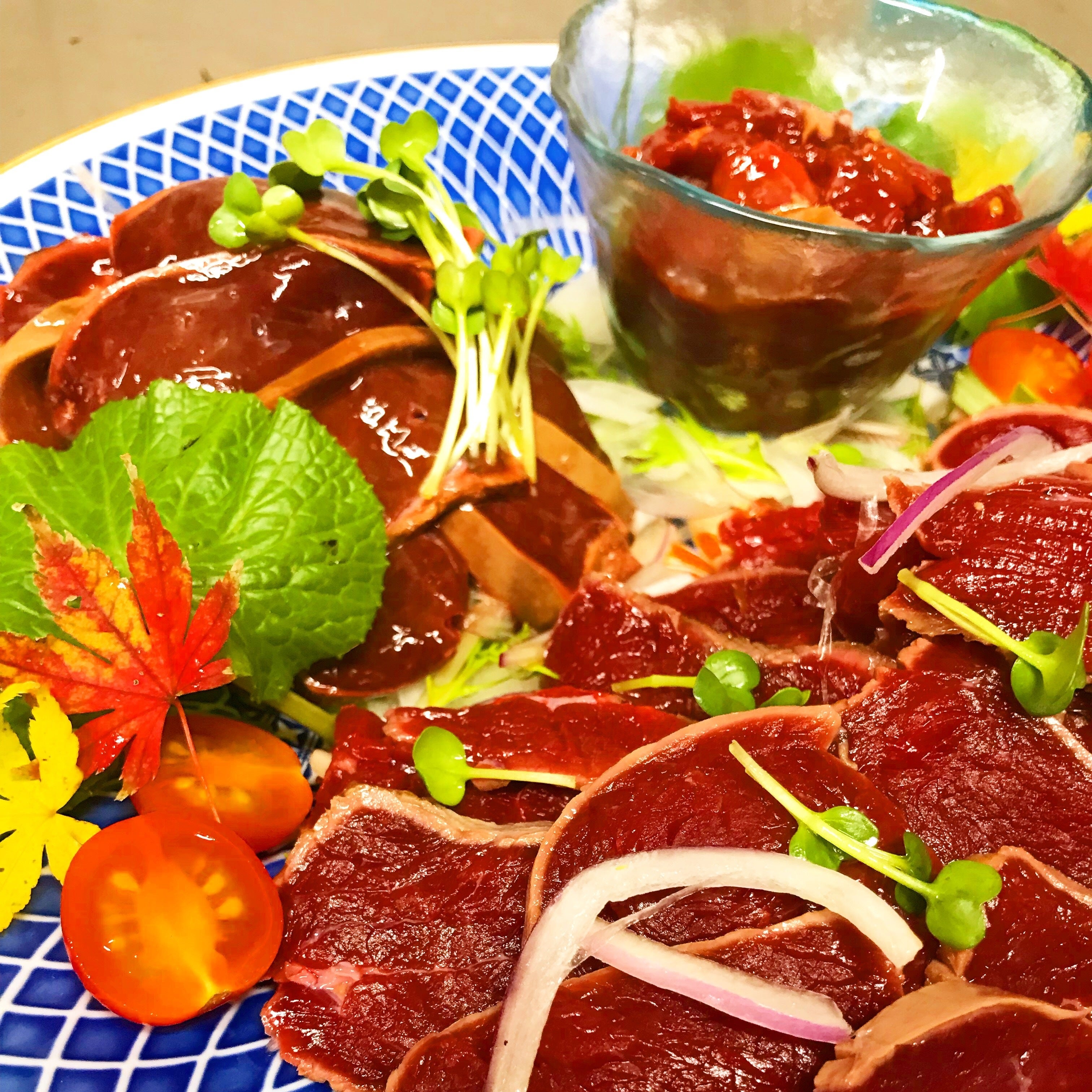 写真はわさびダチョウのタタキ