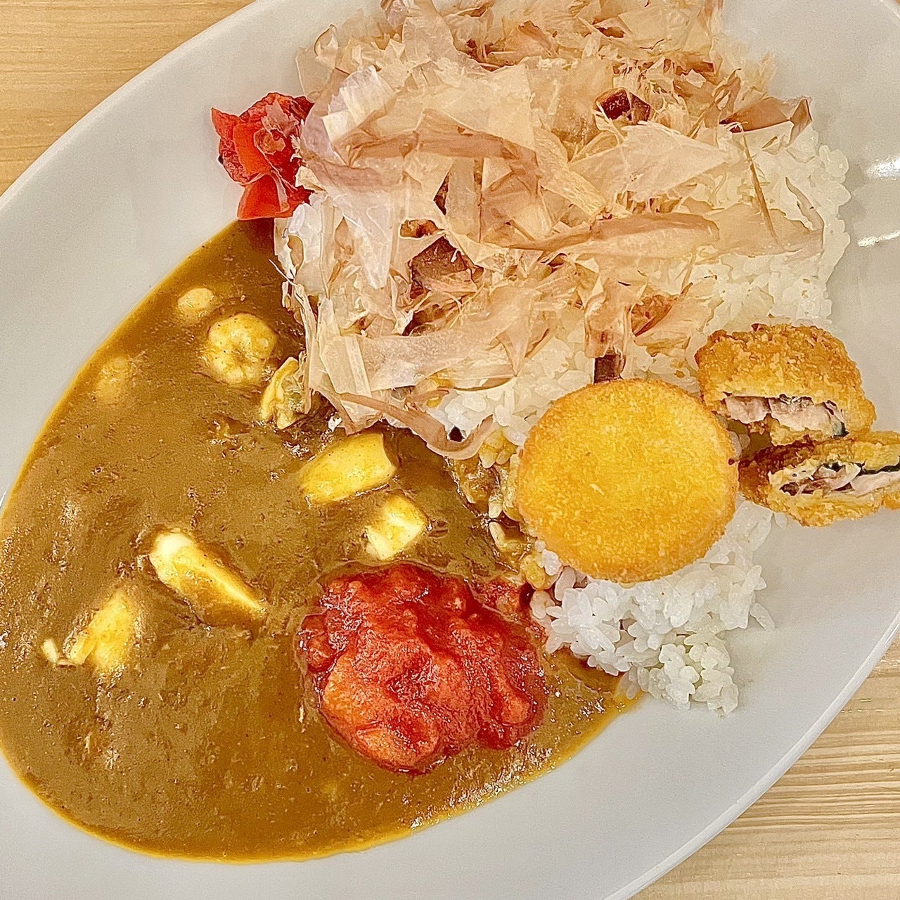 (トッピング例)花かつお、カットトマト、洋風だしカレーと最高の相性です!