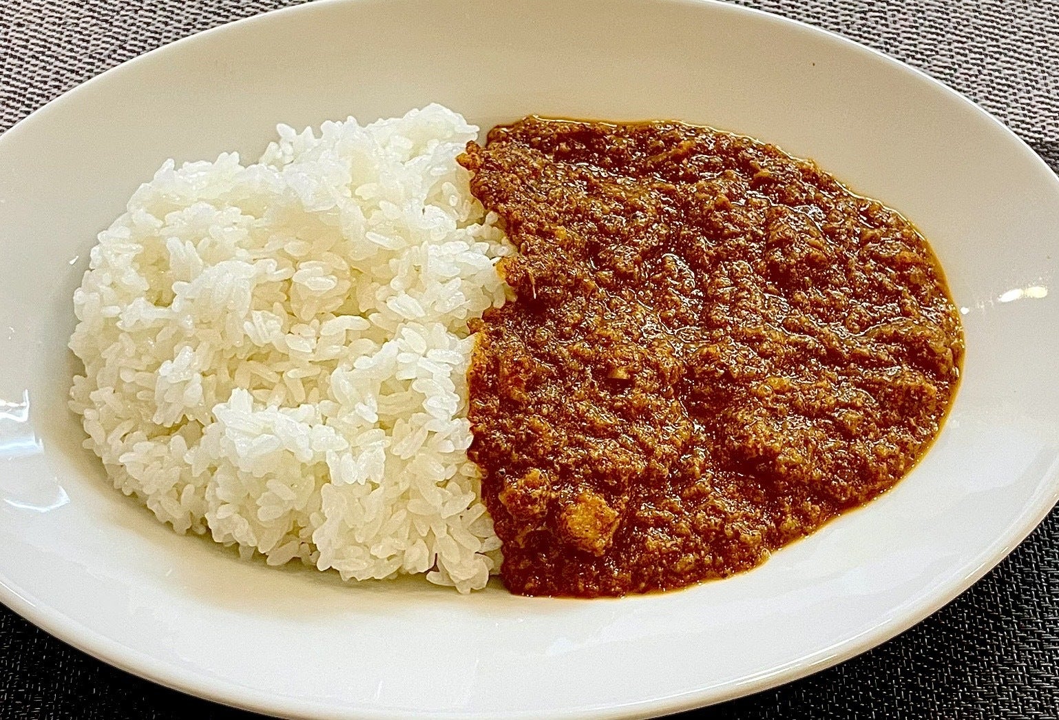 キーマカレーのように見えますがキーマではありません。大量の玉ねぎでドロドロになっています。ヤミツキになる強烈なお出汁とスパイス!