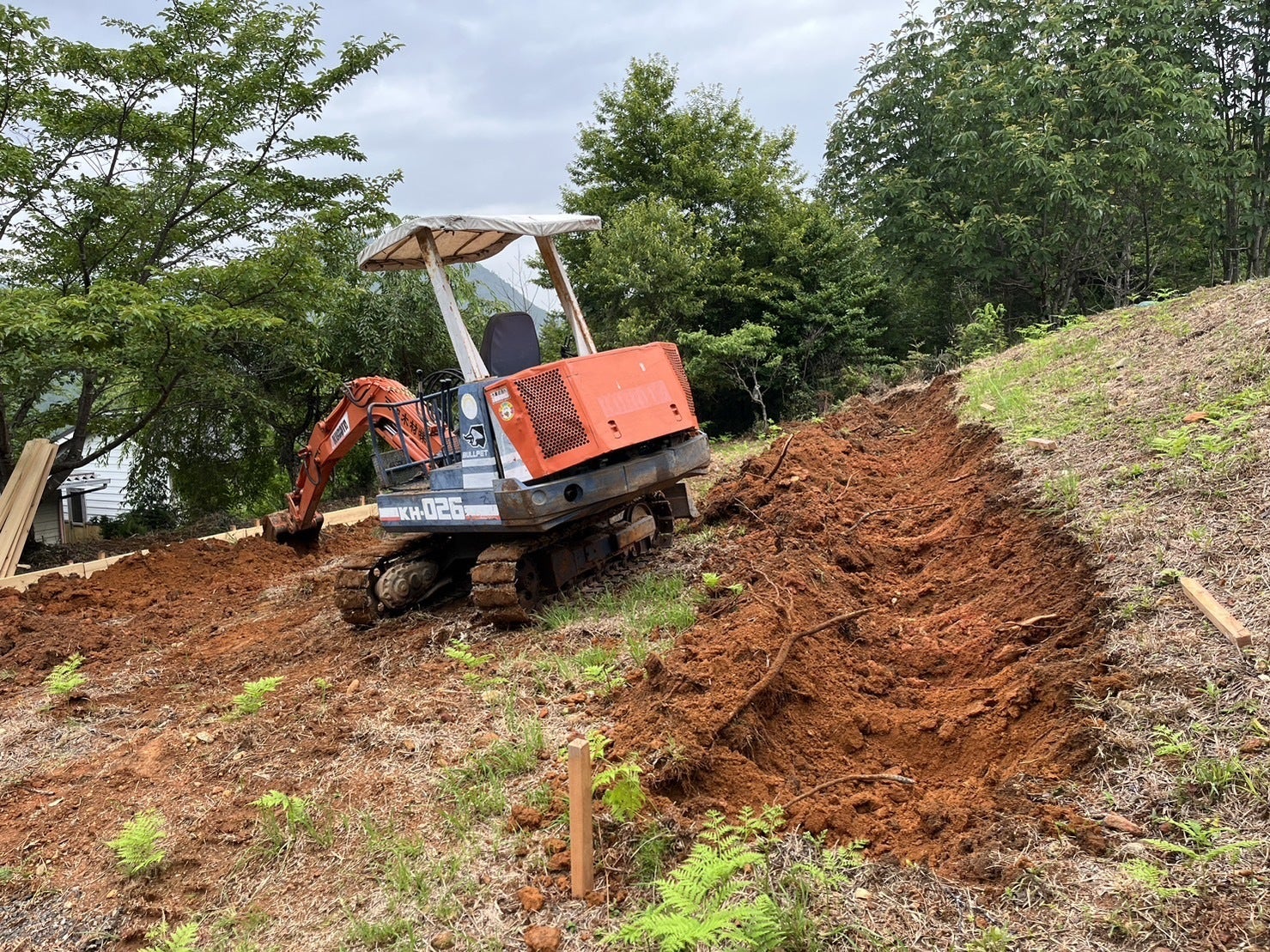 画像キャプション天候に左右される土木作業は雨との闘いです。 土日が雨だとまったく作業が進まないのでメンバー少なくてもできるタイミングで作業はします。時には一人でユンボ作業。。。現在の開拓は第2サイトの整地がメインです。側溝に埋まった土砂を取り除き、土砂が流れ込まないように土留めをしました。後はユンボで掘り起こした土を平らに仕上げて行く作業です。OPENまでには第2サイトも完成予定です。第1サイトと第2サイトはフリーサイトになりますのでお好きな所でテント立ててくださいね。9月中旬よりクラウドファンディングのリターン品の発送を始めます。現在スタッフと誠意準備中ですのでもうしばらくお待ちくださいね。BAN-SICK板津