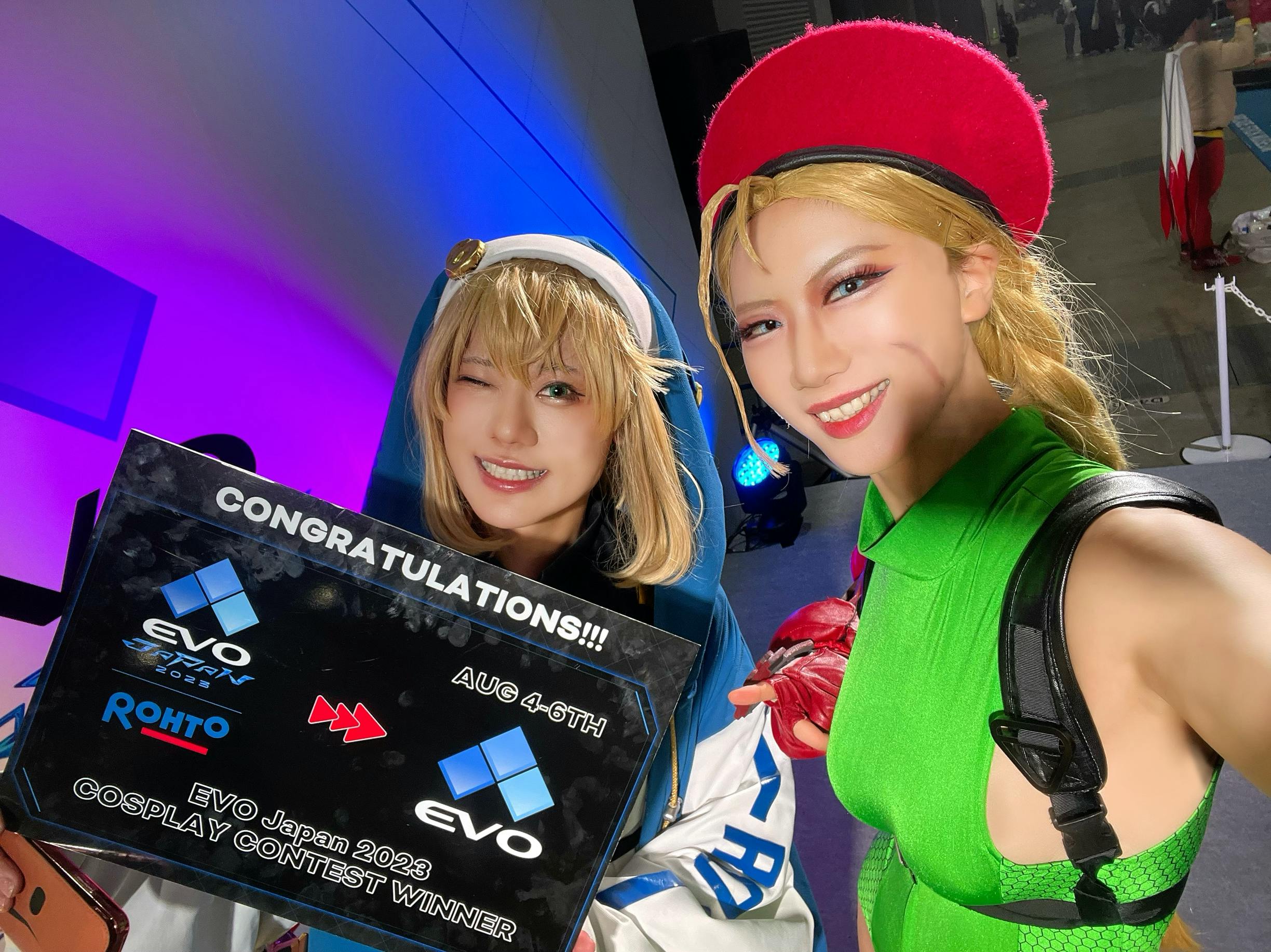惜しくも優勝を逃してしまいましたが、本当に良い経験ができました!!そして、とても喜ばしいことに、EVO一日目に一緒に回ったブリジットコスの彼が総合コンテストで最優秀賞を受賞しました!!最優秀賞受賞者には、8月にラスベガスで行われる本場のEVOにご招待されます。