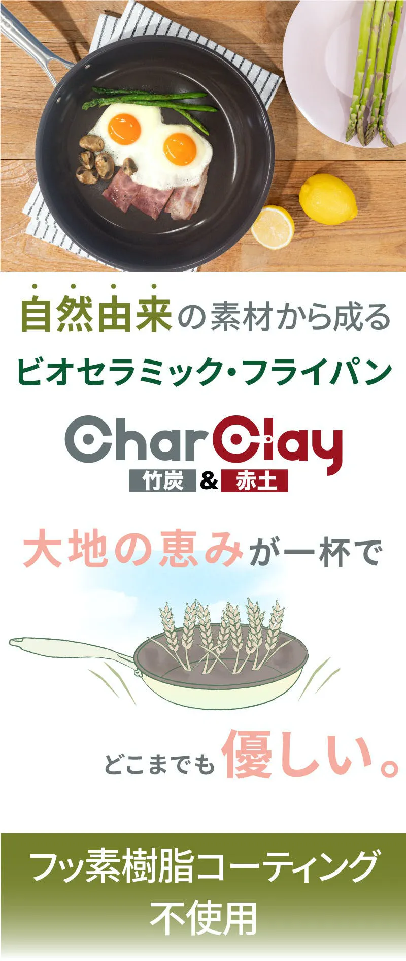 CharClay ビオセラミック・フライパンはどこまでも優しく、安心です。