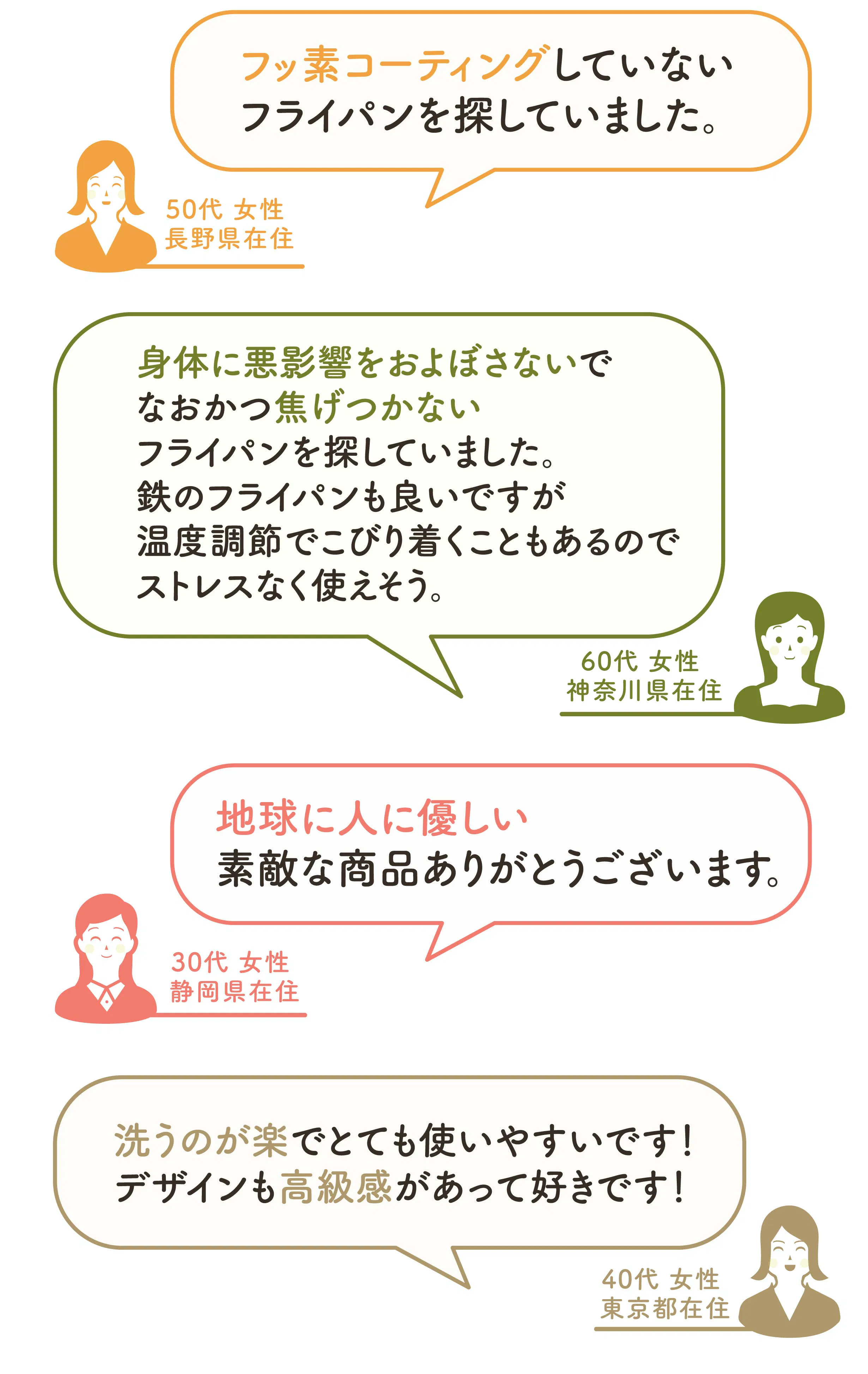 Chef Medalのビオセラミックフライパンに対するお客様の声をいただいております。