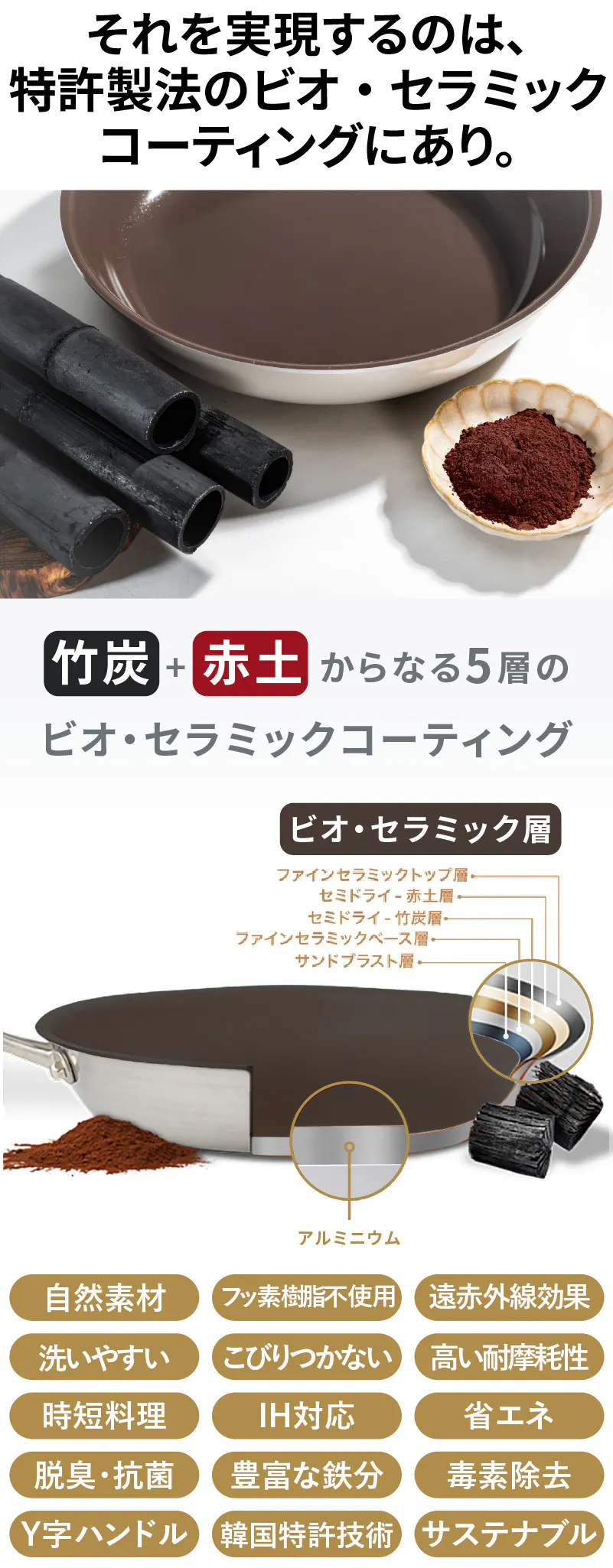 今回のプロジェクト 「ビオ・セラミックフライパン CharClay 」は、韓国 CHEFMEDALの開発した特許技術を用いたサステナブルなフライパンで、ビオ・セラミックコーティング+アルミの構成から成ります。