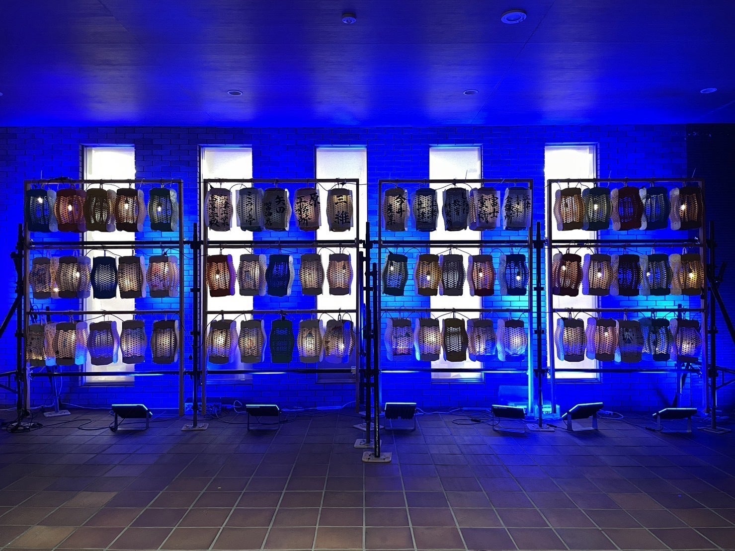 提灯(大)は江津の資材を用い、地元の学生(ポリテクカレッジ島根、江津工業高校)と協力して作成し、地域に根差した提灯を作成します。