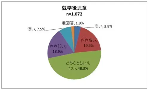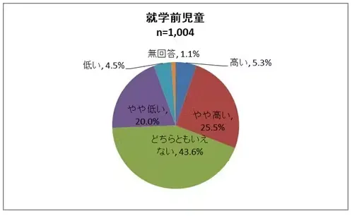 本市における子育て環境や支援への満足度が「高い」と「やや高い」を合わせると、就学前(30.8%)、就学後(23.4%)となっています。一方、満足度が「低い」と「やや低い」を合わせると、就学前(24.5%)、就学後(26.4)となっており、就学後においては、満足度が「高い」より「低い」と感じる保護者の割合が、わずかに高くなっています。又、就学前と就学後のどちらも「どちらともいえない」が40%以上います。