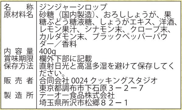 『COCOCORO特製ジンジャーシロップ』400g 2,780円