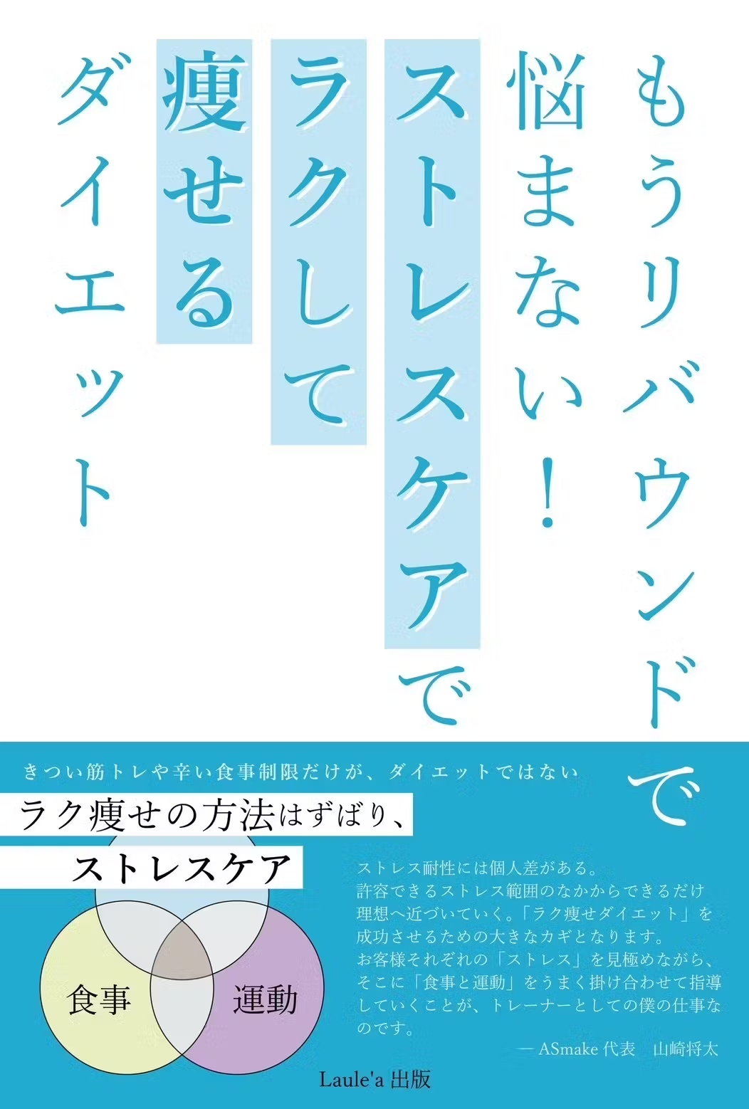 「使う筋肉のバランス」と「栄養に注目した食事」を重視する、女性専用パーソナルトレーニングジムASmake(アスメイク)代表 山﨑将太が執筆する、ダイエットとリバウンドの負のサイクルから抜け出したい女性のための「ラク痩せ」の本です。