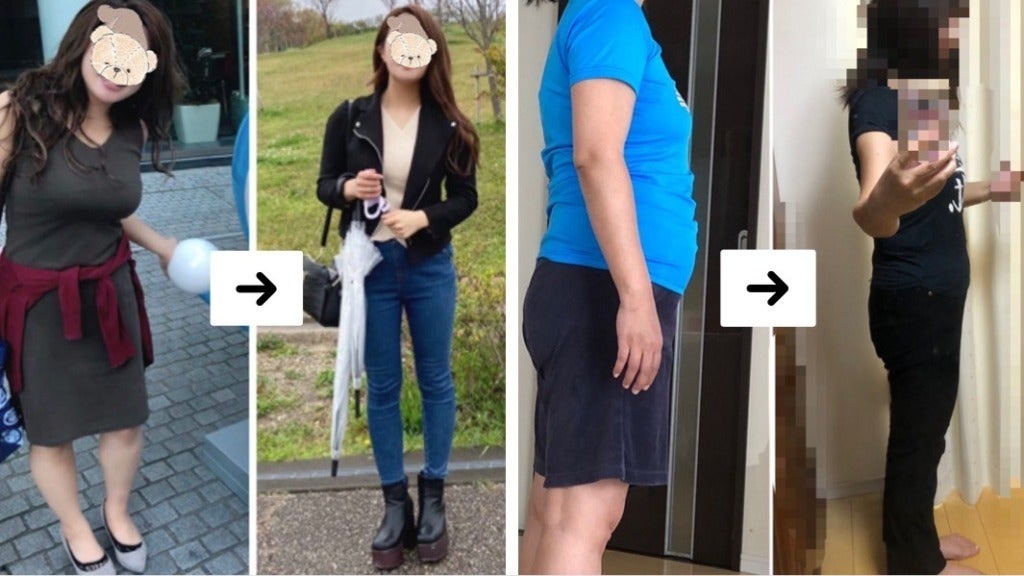 (左)20代Oさん。「食事を極端に減らして、運動はほぼナシ」という、無理なダイエットなどで痩せてはリバウンドを繰り返していたが、僕のジムで楽しく無理のないトレーニングをして、約10ヶ月間で−11キロのダイエットに成功