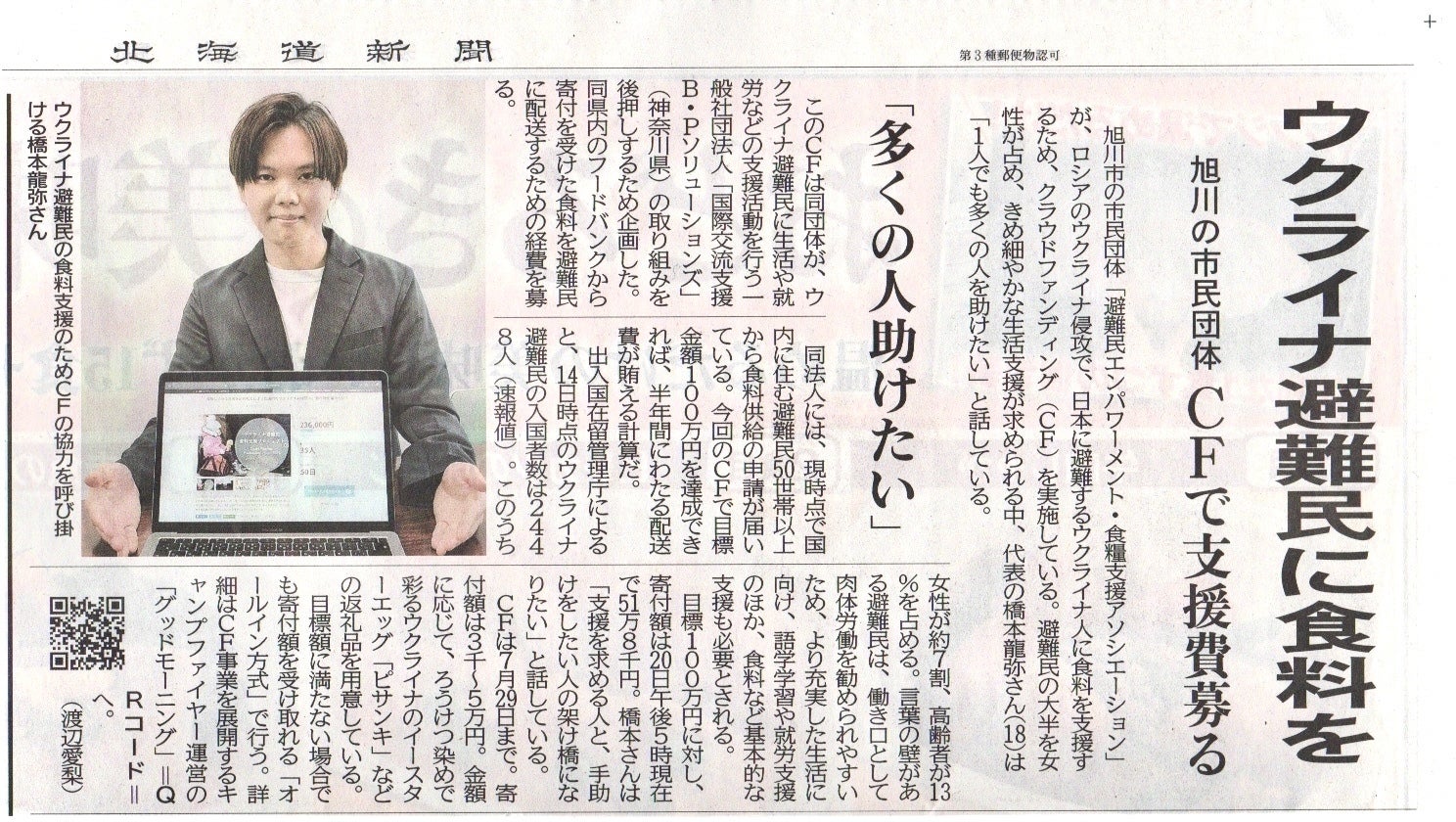 北海道新聞さんに本プロジェクトをご紹介いただきました!