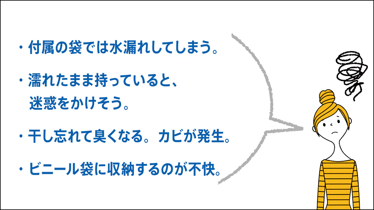 casara caseはこんなわずらわしさを解決。濡れたままサッと入れて、そのまま1時間でほぼ乾燥。