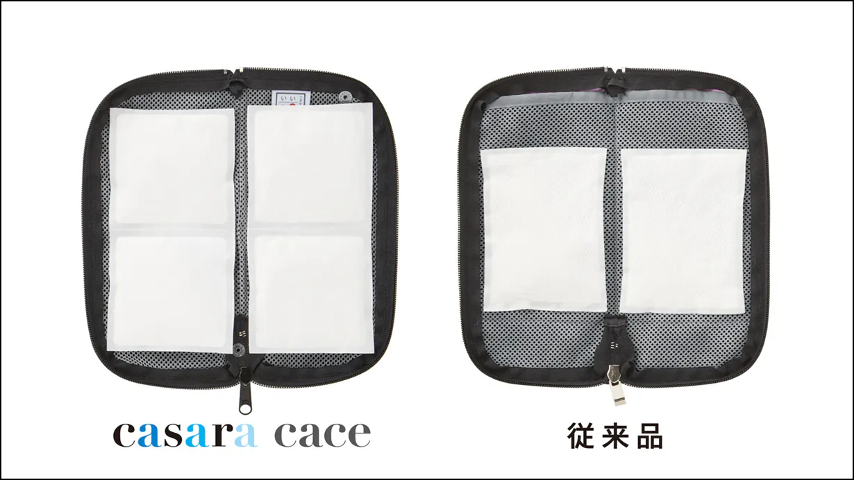 インナーを大型化。casara caseでは、Sサイズで2連、Lサイズで3連のものをそれぞれ2枚ずつ使用します。