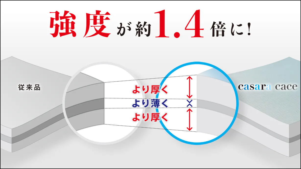 不織布の強度は従来品の約1.4倍に。より長くお使いいただけます。