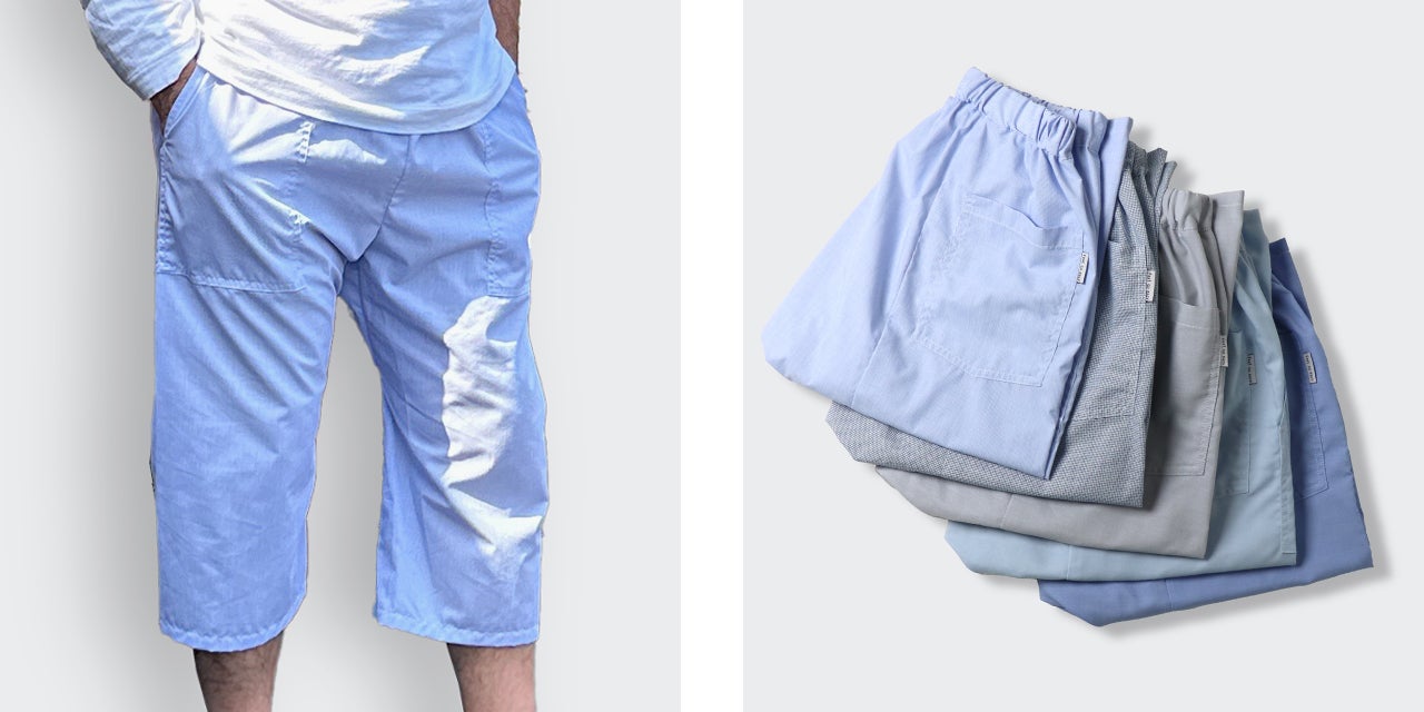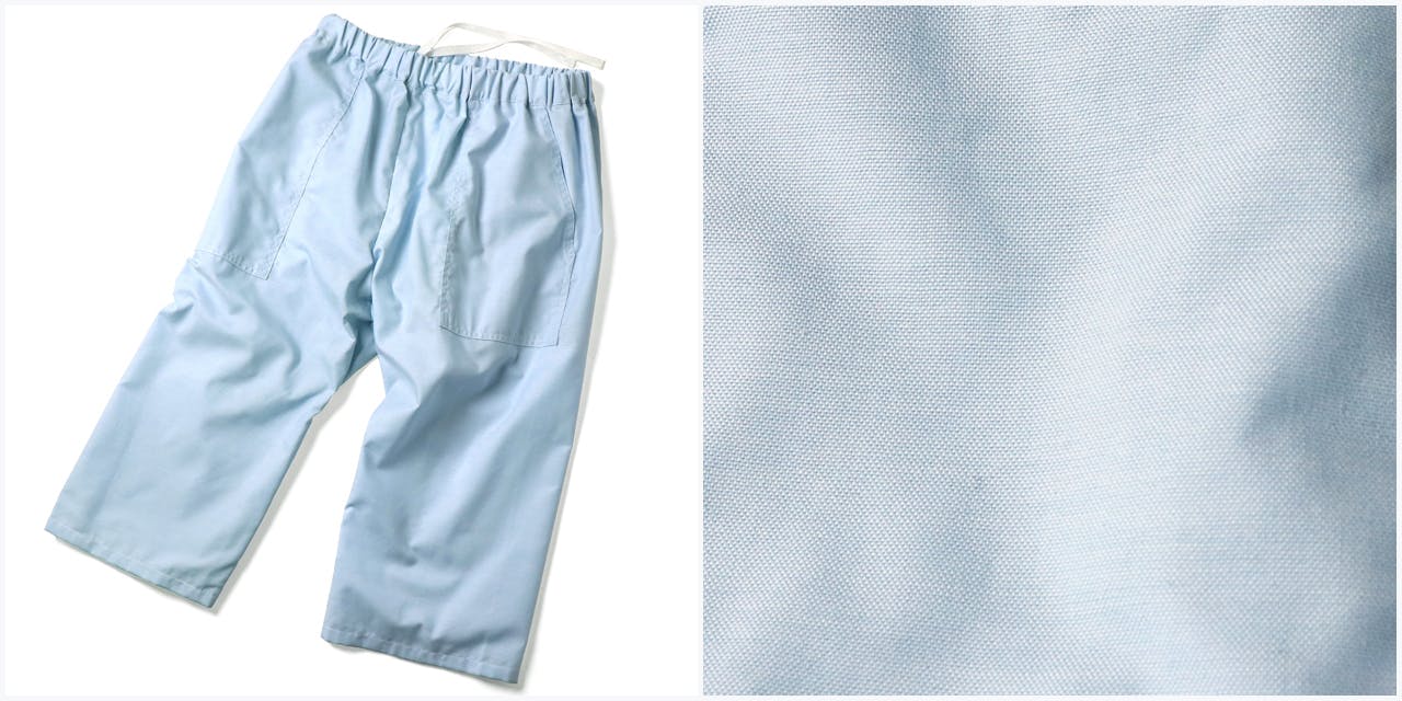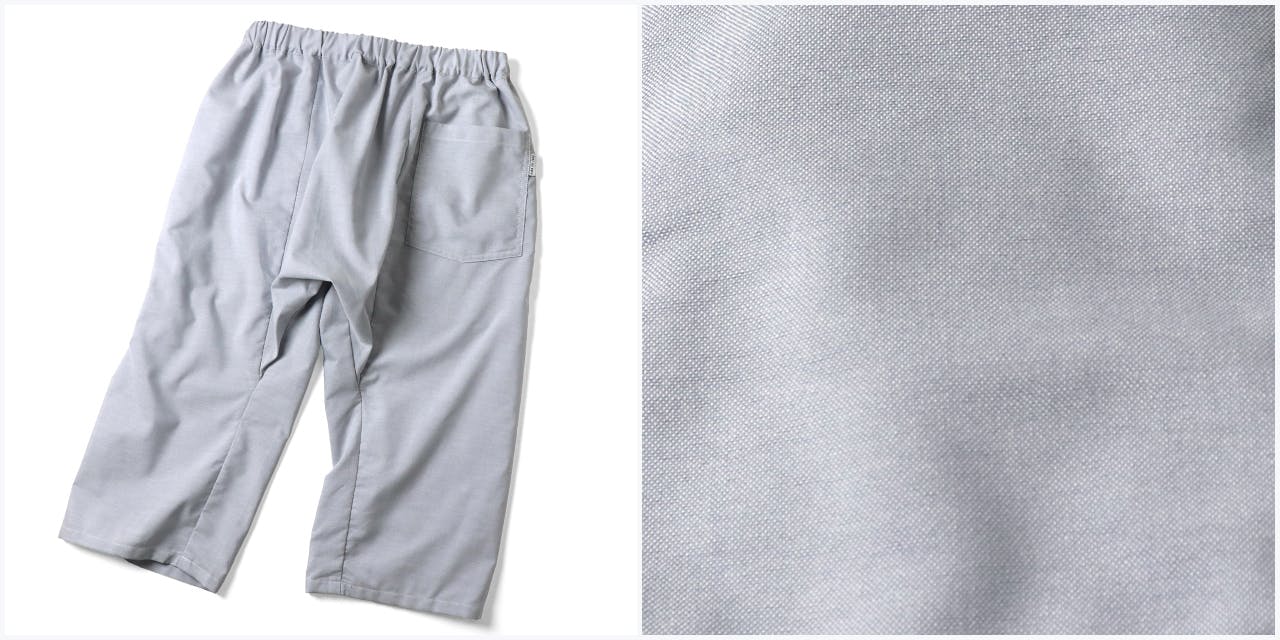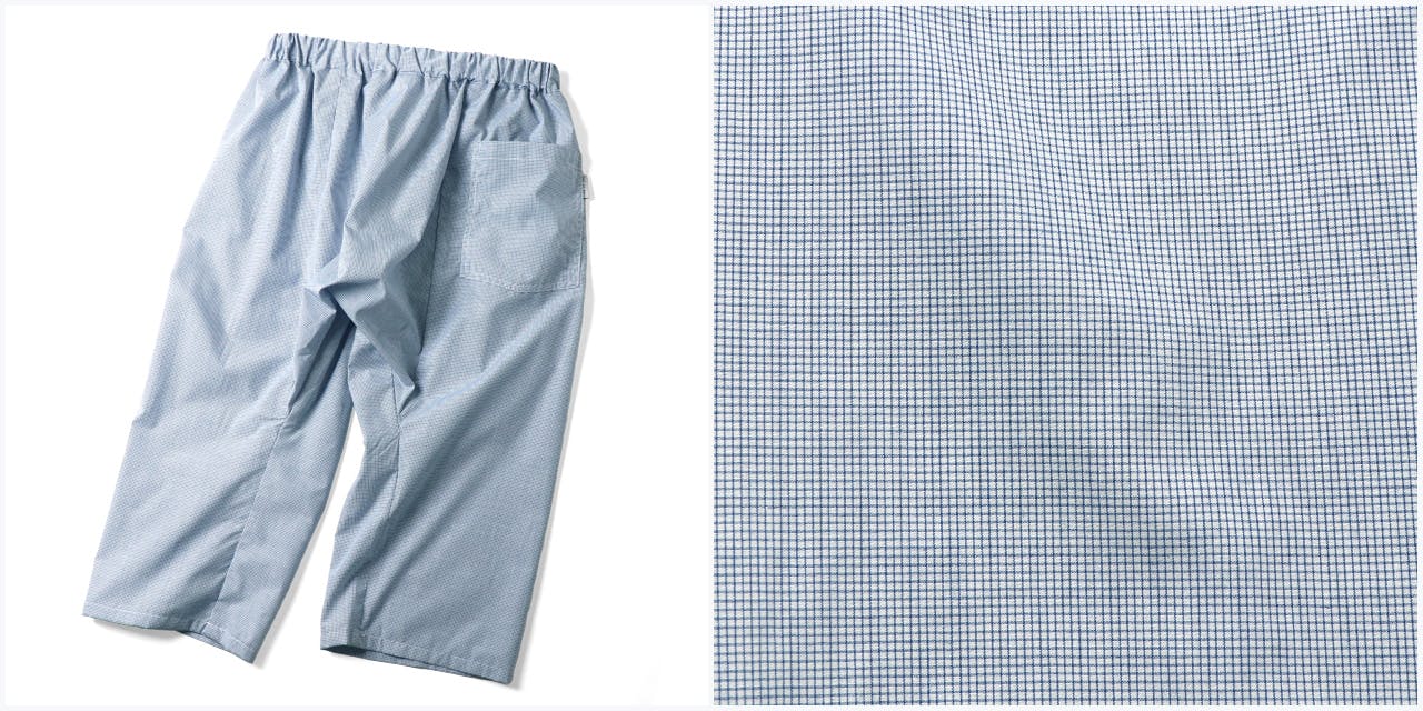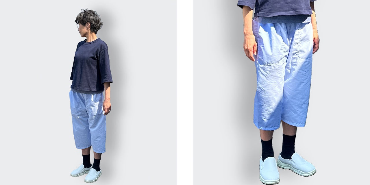 この職人仕様のステテコを現代の縫製工場に協力してもらい、インナーとしてだけではなくアウターとして1枚でも着用できるようアレンジを加えて再現しています。