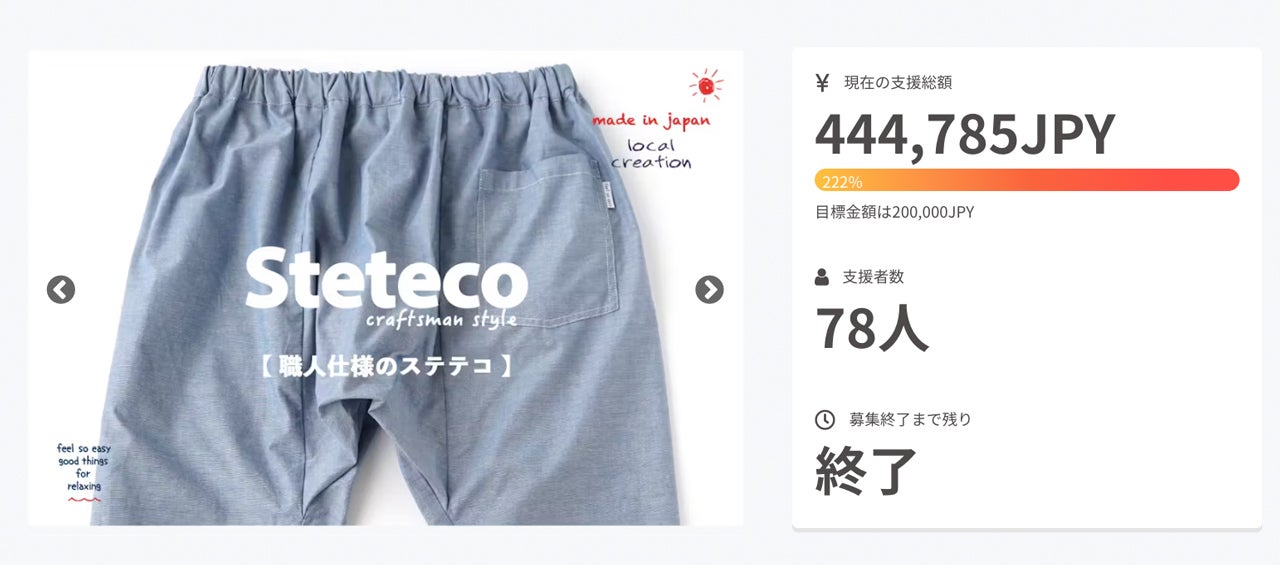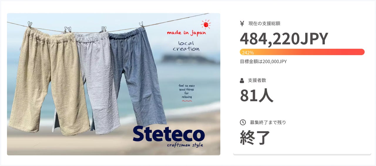 のプロジェクトで Steteco〜craftsman style〜【職人仕様のステテコ】に多くのご支援をいただきました。